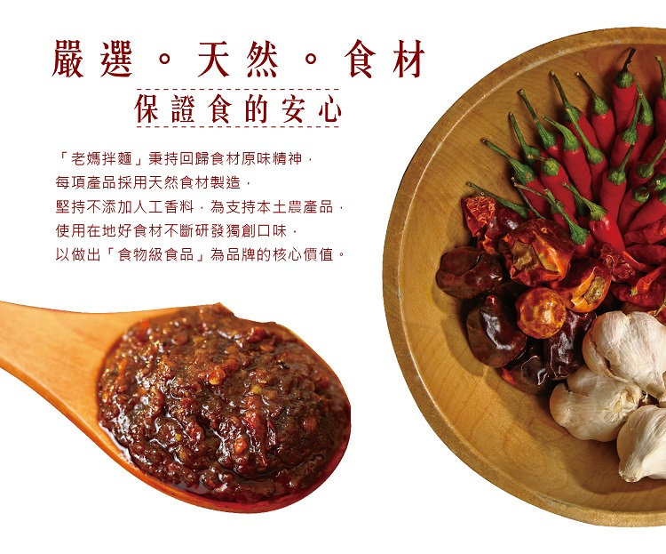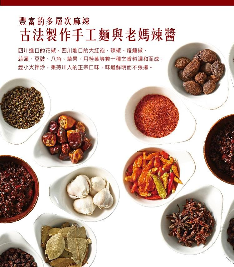 • 辣椒、花椒、八角等調和的獨家麻辣拌醬