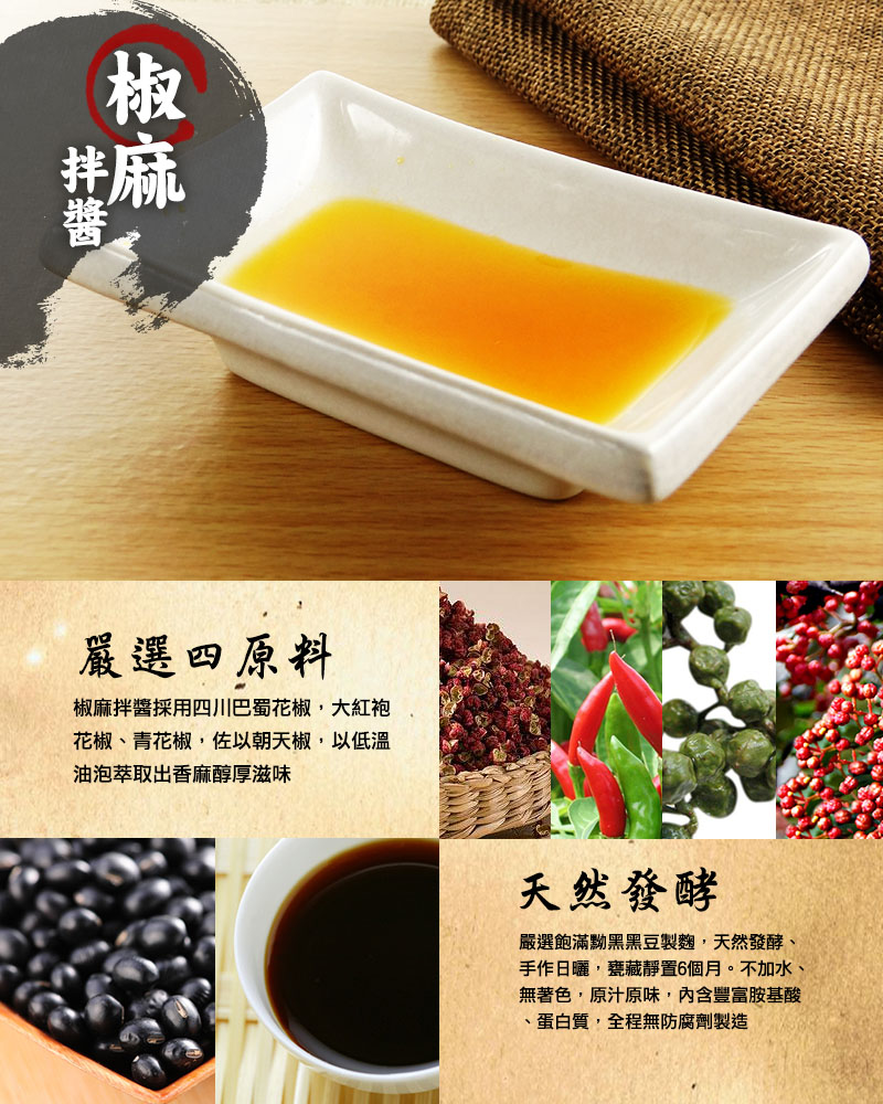 • 椒麻油包成份:軟質棕油、大豆沙拉油、芥花油、花椒萃取物、辣椒抽出物、抗氧化劑 (第三丁基氫醌、維生素E、混合濃縮生育醇)