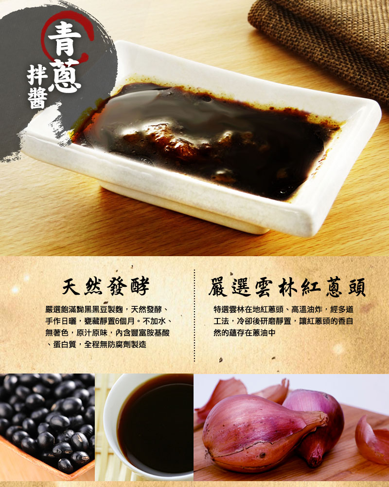 • 香蔥醬包成份:純釀造醬油、蔥油(軟質棕油、大豆沙拉油、紅蔥萃取物、抗氧化劑 (混合濃縮生育醇)